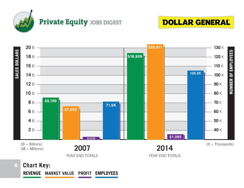 Dollar General, a discount retailer with more than 8,000 stores in the United States was acquired by private equity firm Kohlberg Kravis Roberts for $7.3 billion, including about $380 million in assumed debt. Kohlberg Kravis paid $22 in cash for each Dollar General share, or about 31 percent more than the shares’ closing price. Part of the acquisition plan included speeding up store closings (at the time of the deal, 400 outlets were planned to be closed) to boost profits.