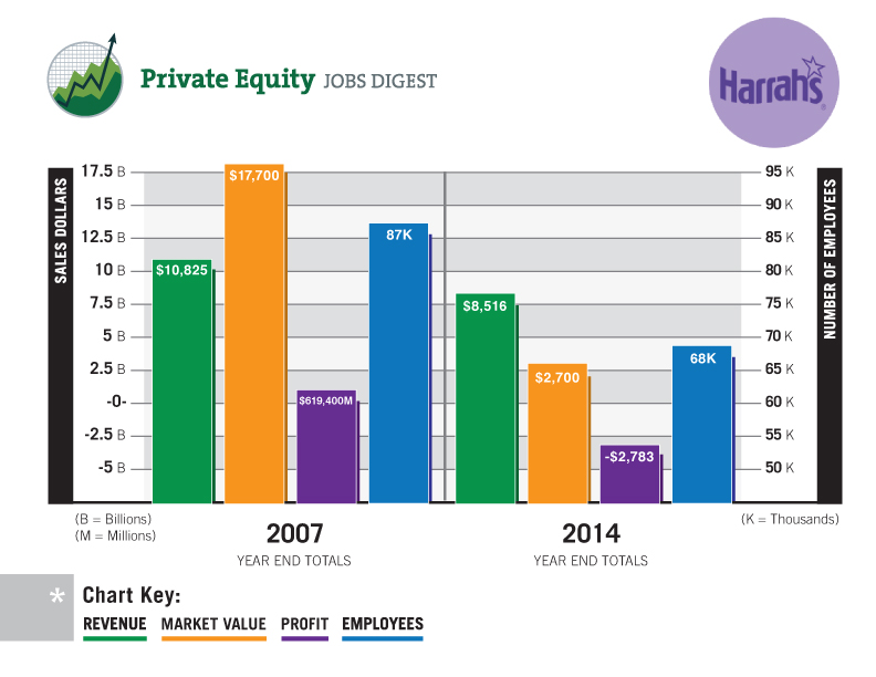 The $17.7 billion buyout of Harrah’s Entertainment by two private equity firms, Apollo Management and Texas Pacific Group, was the fourth largest private equity buyout ever at the time. The transaction, which included the assumption of $10.7 billion in debt, totaled approximately $27.8 billion