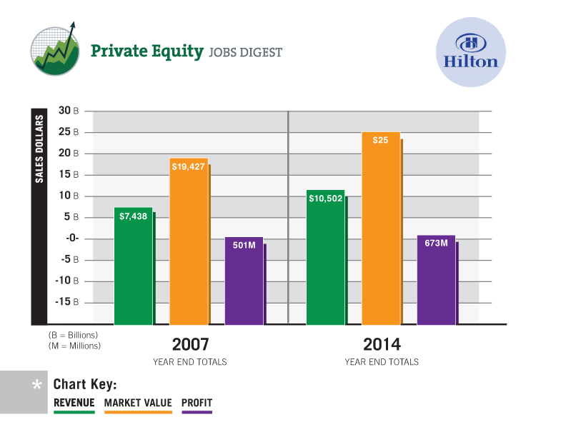 In 2007, the Blackstone Group bought Hilton Hotels in a $26 billion deal that added one of the largest U.S. hotel chains to the list of companies bought out by the private equity firm that year. The amount Blackstone paid was a 40 percent premium over its last closing price and the deal included $7.5 billion in debt.